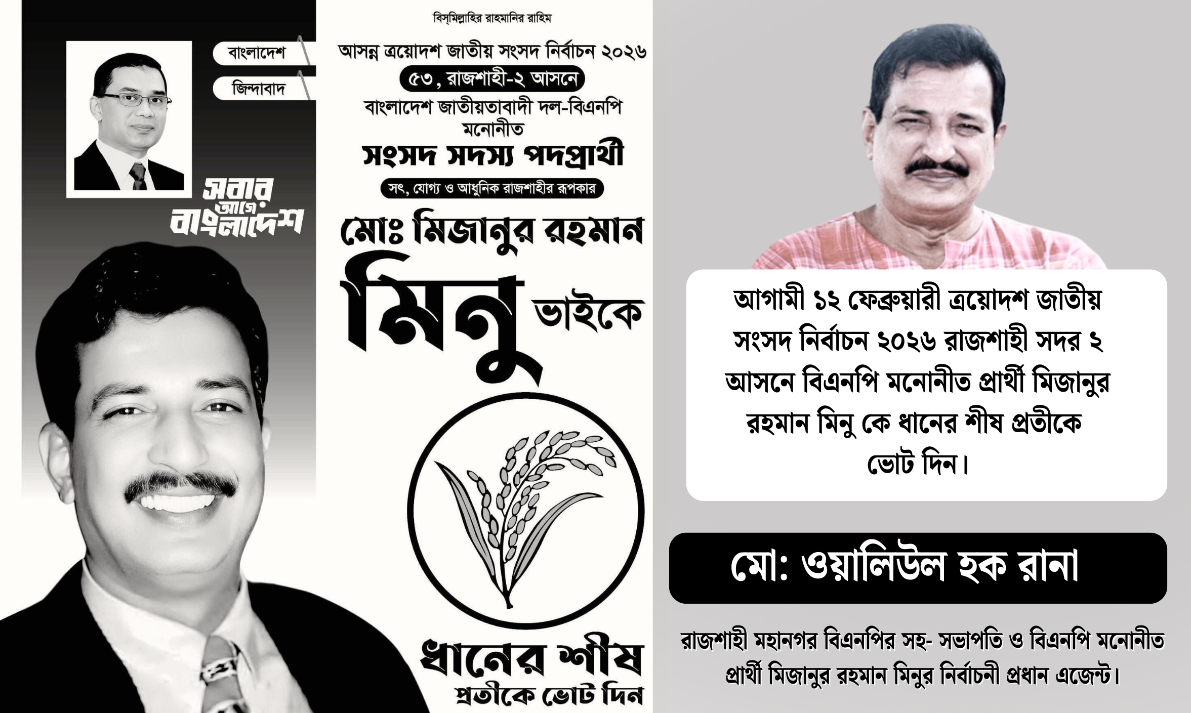 রাজশাহী, ২৯ জানুয়ারি, ২০২৬ (বাসস): রাজশাহী-২ (সদর) আসনে বাংলাদেশ জামায়াতে ইসলামীর প্রার্থী মহানগর জামায়াতের নায়েবে আমির ডা. মোহাম্মদ জাহাঙ্গীর বলেছেন,…