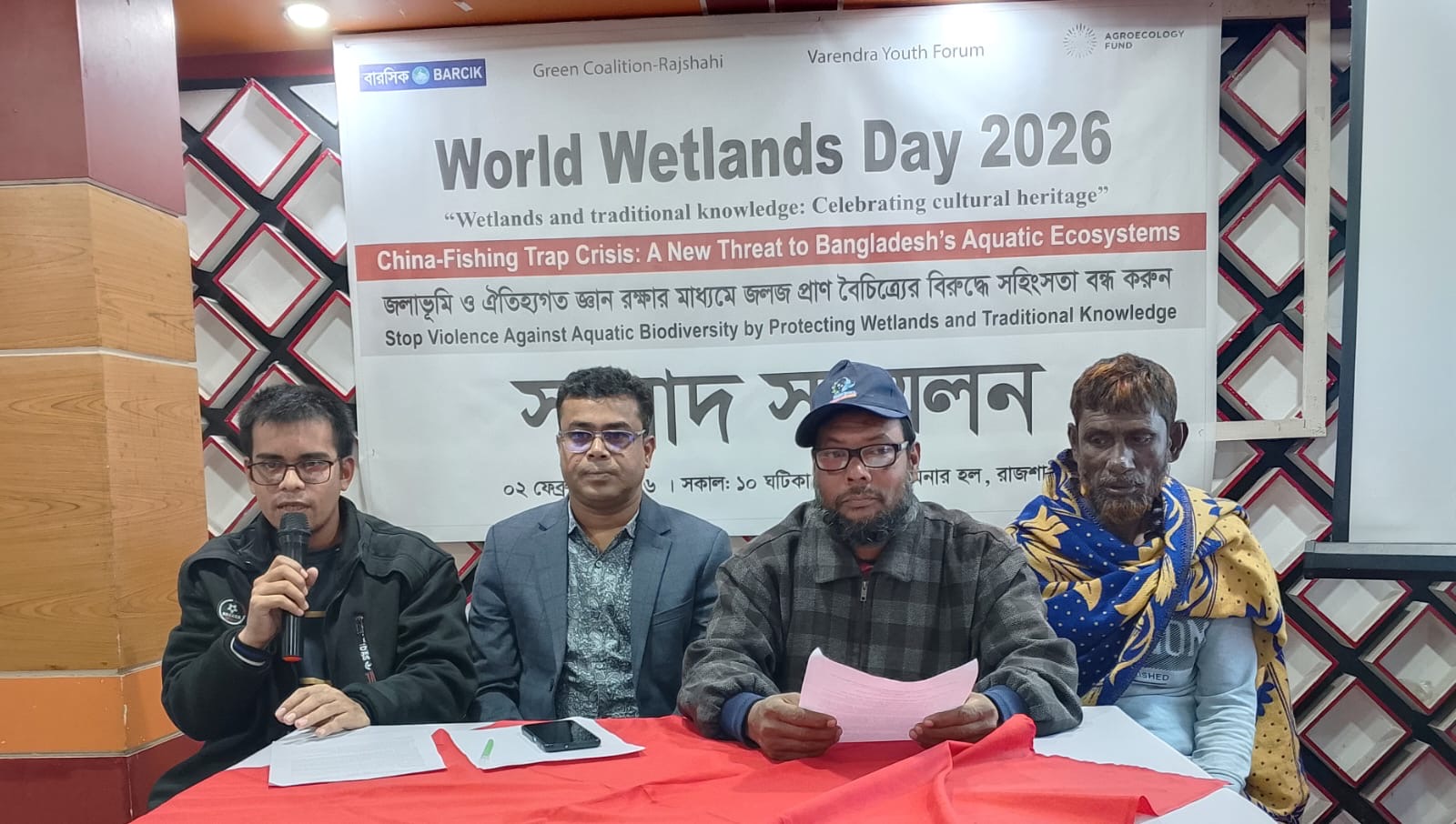 চায়না মাছ ধরার ফাঁদ ও হানিট্রাপ ব্যবহারের কারনে বরেন্দ্র অঞ্চলসহ দেশের জলাভূমির প্রাণবৈচিত্র্য মারাত্বক হুমকিতে। সংবাদ সম্মেলনে উদ্বেগ ও জরুরি নীতিগত পদক্ষেপের দাবি।