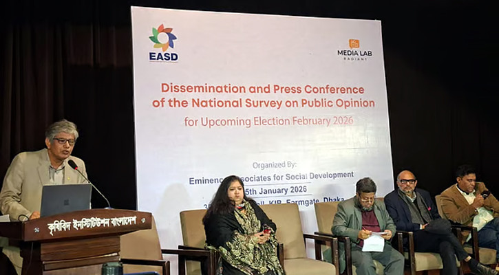 সোমবার (৫ জানুয়ারি) বিকেলে রাজধানীর ফার্মগেটে কেআইবি মিলনায়তনে এ জরিপের ফলাফল তুলে ধরেন ইএএসডির প্রধান নির্বাহী কর্মকর্তা শামীম হায়দার তালুকদার।