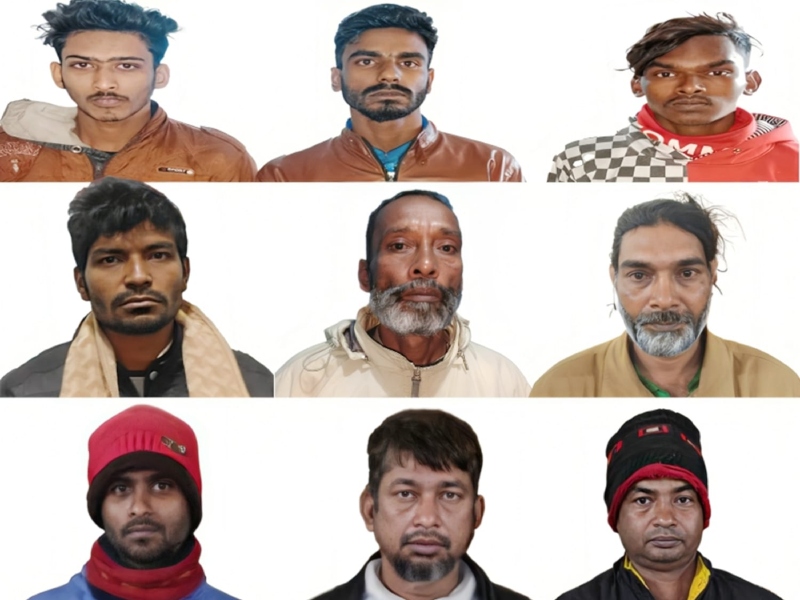 গ্রেফতারকৃতরা হলো, মোজাম্মেল ওরফে মোজাম (৫০), নাজমুল হক (৩৫) রাজ্জাক আলী (৪০), লিটন আলী (২৪), সাহারুপ আলী ওরফে রবিন (২২), সাগর আলী (৩২) তাপস বিশ্বাস (২০), অমিত হাসান ওরফে অমি (২৮) এবং রফিকুল ইসলাম (৬০)।