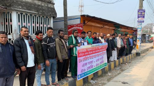 রাজশাহী কোল্ডস্টোরেজে আলু লোড-আনলোডের সময় বস্তার ওজন ৫০ কেজির বেশি বহন করানো যাবে না এই একদফা দাবিতে রাজশাহীর পবা উপজেলায় স্মারকলিপি প্রদান, সংবাদ সম্মেলন ও মানববন্ধন কর্মসূচি পালন করেছেন কুলি…