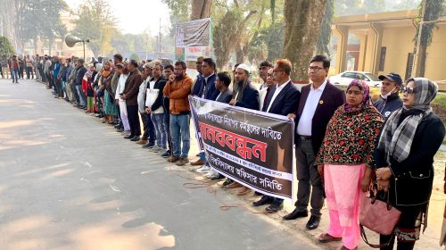 রাজশাহী বিশ্ববিদ্যালয়ে (রাবি) নিরাপদ কর্মপরিবেশের দাবিতে মানববন্ধন কর্মসূচি পালন করেছে রাজশাহী বিশ্ববিদ্যালয় অফিসার সমিতি। বুধবার সকাল ১১টা থেকে দুপুর ১২টা পর্যন্ত রাবির সিনেট ভবনের সামনে এই মানববন্ধন অনুষ্ঠিত হয়। মানববন্ধনে…